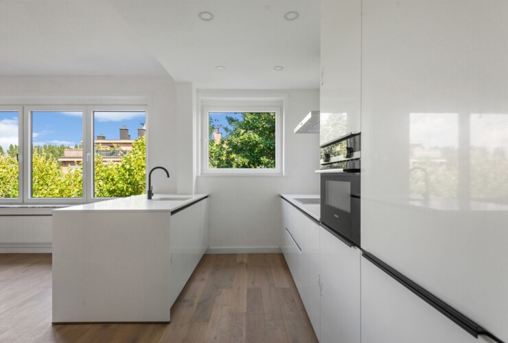 Vlakbij het Boekenberg Park gelegen een ruim dakappartement op de 4e verdieping ca. 135m2 ( met lift) en groot zuidgericht zonneterras ca. 45m2 bestaande uit: ruime inkomhal met ingemaakte vestiairekasten, aparte ...